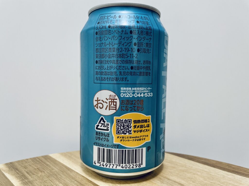 ベトナム製造、260円。どうかと思いましたが、全く問題ない!というか標準以上のIPAで、満足できます😆
