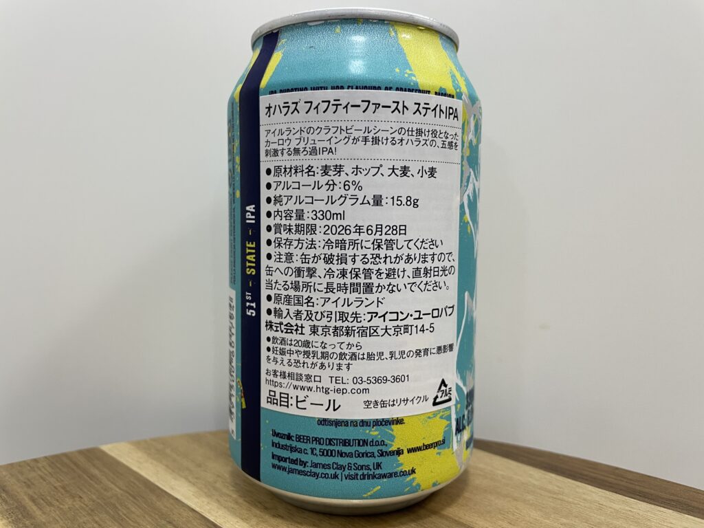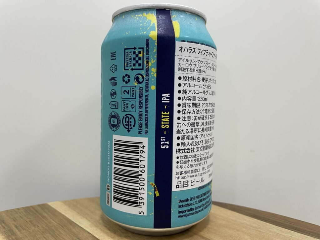 商品名:o’hara’s 51st STATE IPA(フィフティーファースト ステイトIPA)